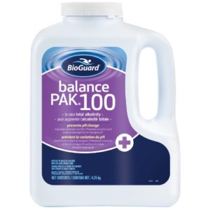 Balance Pak® 100 de BioGuard® sert à augmenter l’alcalinité totale dans l’eau de piscine. Une faible alcalinité totale peut rendre l’eau corrosive et irritante et peut causer des taches et décaper les surfaces de la piscine. L’augmentation d’une faible alcalinité totale peut également causer la fluctuation excessive du pH; c’est ce qu’on appelle le rebondissement du pH. Pour ces raisons, l’alcalinité totale dans l’eau de piscine doit être maintenue à sa plage appropriée.